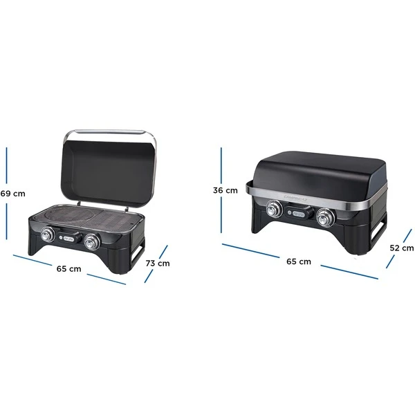 Der Campingaz Tischgrill Attitude 2100 EX verbindet eleganten urbanen Style mit professionellem Grillen, und hat dabei kompakte und transportable Maße. Die Zündung des Attitude Grills funktioniert bequem mit nur einem Knopfdruck. Der Grill bietet mit der Even Heat Technologie und dem langlebigen Blue Flame Brennersystem eine gleichmäßige Wärmeverteilung über die gesamte Grillfläche. Die doppelte digitale Temperaturanzeige misst die Wärme auf jeder Seite der Kochfläche und ermöglicht dadurch ein perfektes und vor allem präzises Wärmemanagement. Die auf dem Display angezeigten Temperaturen steigen in Schritten von 5 Grad an. Unter dem eleganten Deckel verbirgt sich ein geteilter Grillrost mit Culinary Modular Einsatz, der vielseitige Grillmöglichkeiten bietet. Die verschiedenen Einsätze für das Culinary Modular System bringen das urbane Grillen auf das nächste Level, indem man einfach den inneren Ring des gusseisernen Grillrostes herausnimmt und ein Culinary Modular Zubehörteil, wie z.B. Pizzastein Bratpfanne, Plancha oder Paellapfanne (separat erhältlich) hineinlegt. Mit dem Culinary Modular Zubehör kann man seiner Kreativität von Pizza bis Paella frei entfalten. Mit dem patentierten Campingaz InstaClean System war die Reinigung nach dem Grillen noch nie so einfach. Der Attitude 2100 EX verfügt über eine frontseitige Fettauffangschale und ermöglicht es, die verchromten, spülmaschinengeeigneten Teile in weniger als 60 Sekunden schnell, einfach und sauber zu entnehmen.Art.-Nr.: 1657945