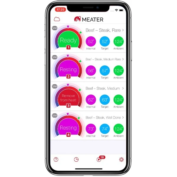 | Weitere Informationen | Mit den vier Meatern kann man über 50 Stunden ununterbrochen Kochen oder verschiedene Fleischsorten gleichzeitig garen. Die interne Batterie reicht für 1.000 Aufladezyklen. | ||