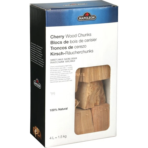 Die Napoleon Kirschholz Räucherchunks 67048 verleihen dem Grillgut ein milde, fruchtige Rauchnote. Sie verströmen über eine lange Zeit ihr angenehmes Raucharoma. Die Wood Chunks (Holzstücke) ermöglichen einen lang anhaltenden Verglimmungsprozess und eignen sich dank ihrer Größe bestens für Low & Slow Cooking. Sie eignen sich sehr gut z.B. für den Napoleon Apollo Watersmoker und alle Holzkohlegrills von Napoleon.Art.-Nr.: 1591769