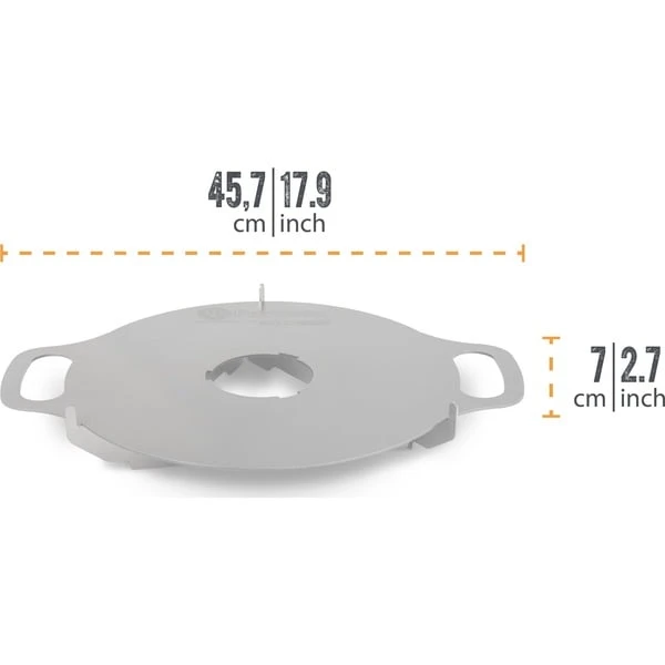 Mit der Atago Grillplatte von Petromax erweitert man den Holzkohlegrill Atago um eine typisch spanische Plancha-Platte mit durchdachten Details. Die in Deutschland hergestellte Grillplatte aus 3mm dickem geöltem Stahl ermöglicht dank unterschiedlicher Temperaturzonen beste Ergebnisse. Hier brutzeln deftige Fleischspezialitäten extra saftig, während zeitgleich Grillgemüse oder würzige Shrimps am Rand bei geringerer Hitze darauf warten können, serviert zu werden. Dank der optimalen Hitzeverteilung gelingt ein ideales Garergebnis mühelos und jedes Gericht wird ein Genuss. Die sich bildende Patina sorgt für einen natürlichen Antihafteffekt, der von Mal zu Mal besser wird. Vor dem ersten Gebrauch sollte die Grillplatte dafür sorgfältig eingebrannt werden. Nachdem das Feuer geschürt ist, kommt die Atago Grillplatte sehr schnell auf Temperatur und sorgt für scharfes Anbraten. Durch die Aussparung in der Mitte der Grillplatte kann man einfach Holz oder Kohle nachlegen. Durch die flache Ausführung und das steckbare Trägergestell kann sie leicht im Auto oder Van verstaut und als vielfältige Koch- und Grillstation für jeden Ausflug in Wald und Flur genutzt werden. Die Atago-Grillplatte ist ein problemloser Begleiter bei jedem Outdoor-Abenteuer.Art.-Nr.: 1864629