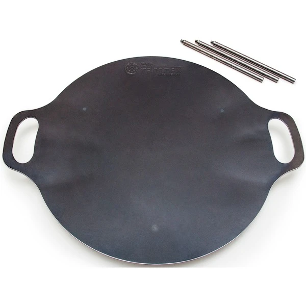 Die Grill- und Feuerschale fs48 von Petromax bietet 2 in 1: Grillpfanne und Feuerschale, das Multitalent aus Stahl. Entweder man entfacht ein Lagerfeuer in der Feuerschale, um den darunterliegenden Boden unversehrt zu lassen oder man stellt die Grillschale mit ihren drei Standbeinen (23cm) über das offene Feuer, um leckeres Essen zuzubereiten. Das Besondere dabei: In der Mitte wird die Schale heißer als am äußeren Rand. Ein saftiges Stück Fleisch gart am Rand nach, während in der Mitte noch das Gemüse brutzeln kann. Bei jedem Brat- und Brennvorgang baut sich eine Patina auf, die für einen natürlichen Antihafteffekt sorgt. Auch ohne ihre Standbeine kann die Grillschale in den Größen fs48 und fs56 z.B. auf einem Atago verwendet werden.Art.-Nr.: 1533716