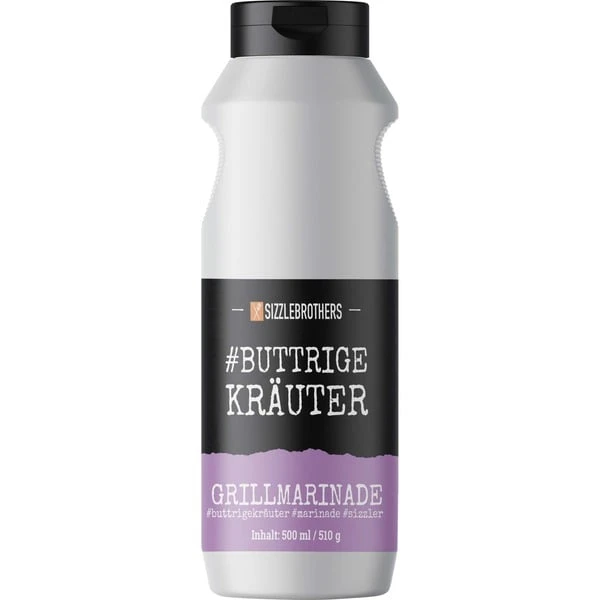 #ButtrigeKräuter ist das lange vermisste Kind in der Grillmarinaden-Familie von SizzleBrothers. Wie konnte eigentlich eine Kräuter-Marinade fehlen? Eine Marinade, die als absoluter Klassiker gilt und zu allen Arten an Fleisch, Fisch und Gemüse passt. Nun ist sie ja da und wartet nur darauf auch an deinem Grill zum Einsatz zu kommen. Eine leckere ausgewoge, buttrige Marinade, die an den leckeren Geschmack einer Kräuterbutter erinnert und so zu wirklich allen Arten an Fleisch und Gemüse passt.Art.-Nr.: 1880806