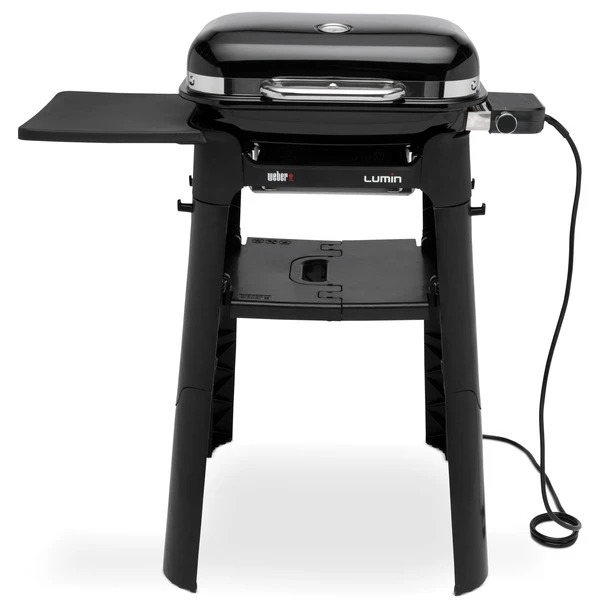 Der Elektrogrill Lumin Compact „Black“ von Weber bringt mit hoher Hitze und großer Vielseitigkeit das urbane Grillen im Freien auf ein neues Niveau. Der multifunktionale Elektrogrill erreicht mit 2.200 Watt Temperaturen über 315°C für scharfes Anbraten und köstliche Grillmuster, während die Räucherfunktion den Grillgeschmack weiter verstärkt. Mit den verschiedenen Grilloptionen kann man gefrorenes Grillgut auftauen, Steaks scharf anbraten, Spieße räuchern, Gemüse dämpfen oder Beilagen kochen. Anschließend hält der Lumin Compact die Speisen bis zum Servieren warm und bietet bei geöffnetem Deckel ein Büfett zur Selbstbedienung. Der intuitiv markierte Bedienknopf macht die Auswahl der Grill-, Dampf-, Räucher- und Aufwärmfunktionen kinderleicht. Das emaillierte Stahlgehäuse und die von vorne zugängliche Fettauffangschale lassen sich nach dem Grillen problemlos reinigen. Der moderne, praktische Lumin Compact mit seinem schwarzen porzellanemailliertem Gehäuse ist ein Hingucker auf jedem Balkon oder Terrasse. Mit seinem besonders kompakten, platzsparenden Design ist der Weber Lumin Compact außerdem ganz leicht zu verstauen und für die nächste Grillparty im Handumdrehen wieder aufgestellt. Mit dem Stand mit Seitentisch ist das Grillen mit dem Lumin Compact noch bequemer. Durch das zusammenklappbare Design lässt er sich einfach aufstellen, zusammenklappen und in einem Schrank oder in der Garage aufbewahren. Der Seitentisch bietet zusätzlichen Platz zum Zubereiten und Servieren und dank der vier integrierten Haken ist das Grillwerkzeug immer griffbereit.Art.-Nr.: 1875514